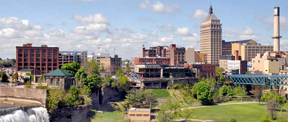OverviewThe High Falls District is an historic area just north of downtown, the site of much of Rochester’s industrial development and an area that officials have targeted for revitalization. The housing includes lofts and apartments such as The Mills at High Falls. The area, naturally, overlooks the High Falls, one of three waterfalls of the Genesee River in Rochester, and includes the Pont de Rennes Bridge, a pedestrian bridge that offers stunning views of the High Falls. Brown’s Race, which diverts water from the falls and once was used to power flour mills and various industries, now is used to generate hydroelectric power. The district has a visitor center and gift shop. High Falls is across State Street from Frontier Field, home of the Rochester Red Wings baseball team, and is close enough to walk to downtown. There are a few small shops and restaurants in the district, but the Center at High Falls, which once included several once-popular nightclubs, is mostly quiet now.