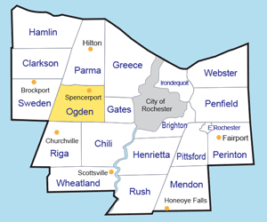 Recreation & Entertainment The thriving village of Spencerport is the recreational center of Ogden, attracting not only residents, but tourists as well. There's an historic tavern on the Erie Canal in Ogden and several golf courses are located here. Parks Northampton Park on Hubbell Road provides over 970 acres of hiking trails. It also features a downhill ski slope, model airplane field, trout fishing in Salmon Creek, and shelters can be reserved; Springdale Farms at 700 Colby Street is a working farm operated by developmentally challenged adults. Pineway Ponds is 72 acres of green-space just north of the Village of Spencerport with lodges, sports areas, hiking and fishing… There area a series of hiking, biking and snowmobile trails in the area as well.